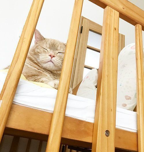 ベビーベッドには先客が!? 見守り隊長のぷーちゃん 【マンチカンのぷーちゃん】vol.58