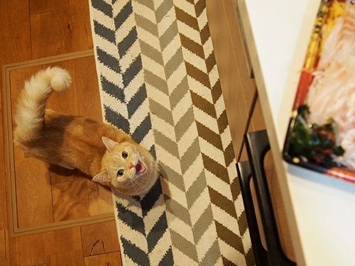 ストックの作業が終わるまでずーっと足元にいるぷーちゃん。