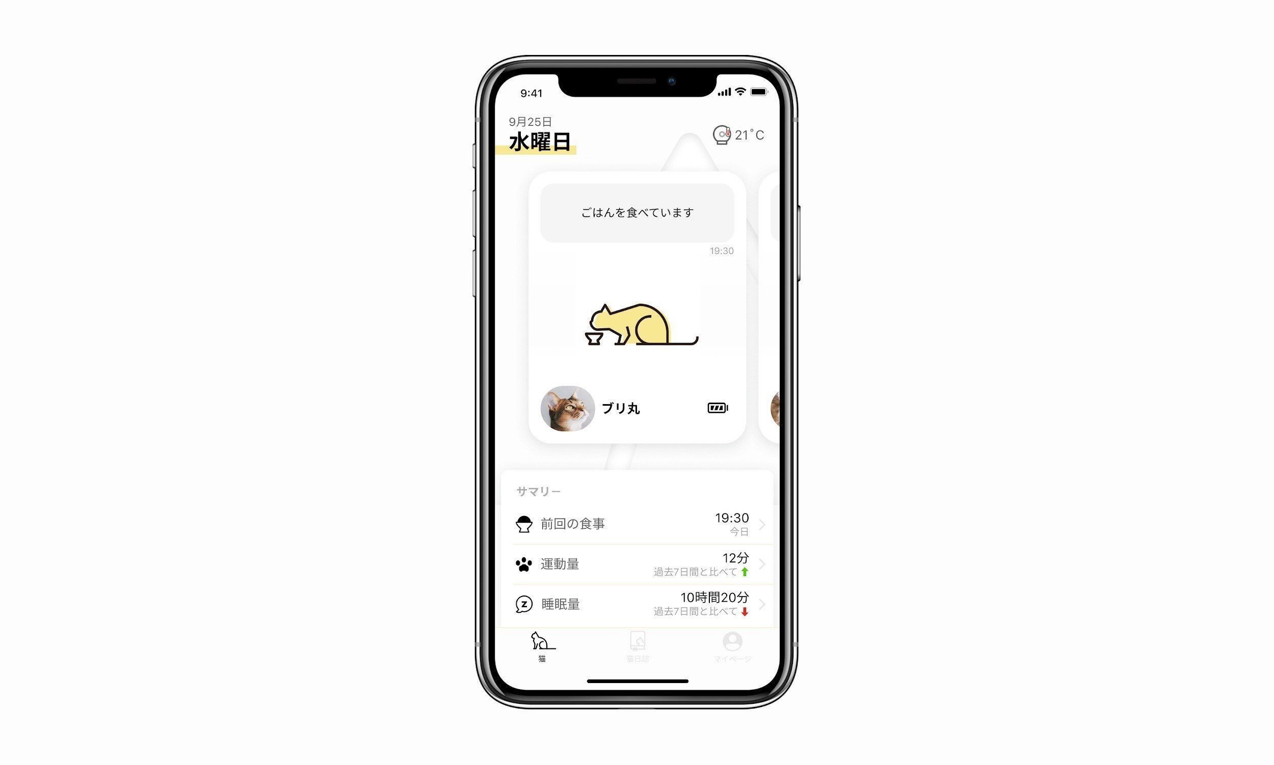 飼い主のみなさんが離れている猫様を近くに感じられるように、「今、猫様がなにをしているか」をアニメーションの猫のアイコンで表示したりいろいろ工夫をしています。