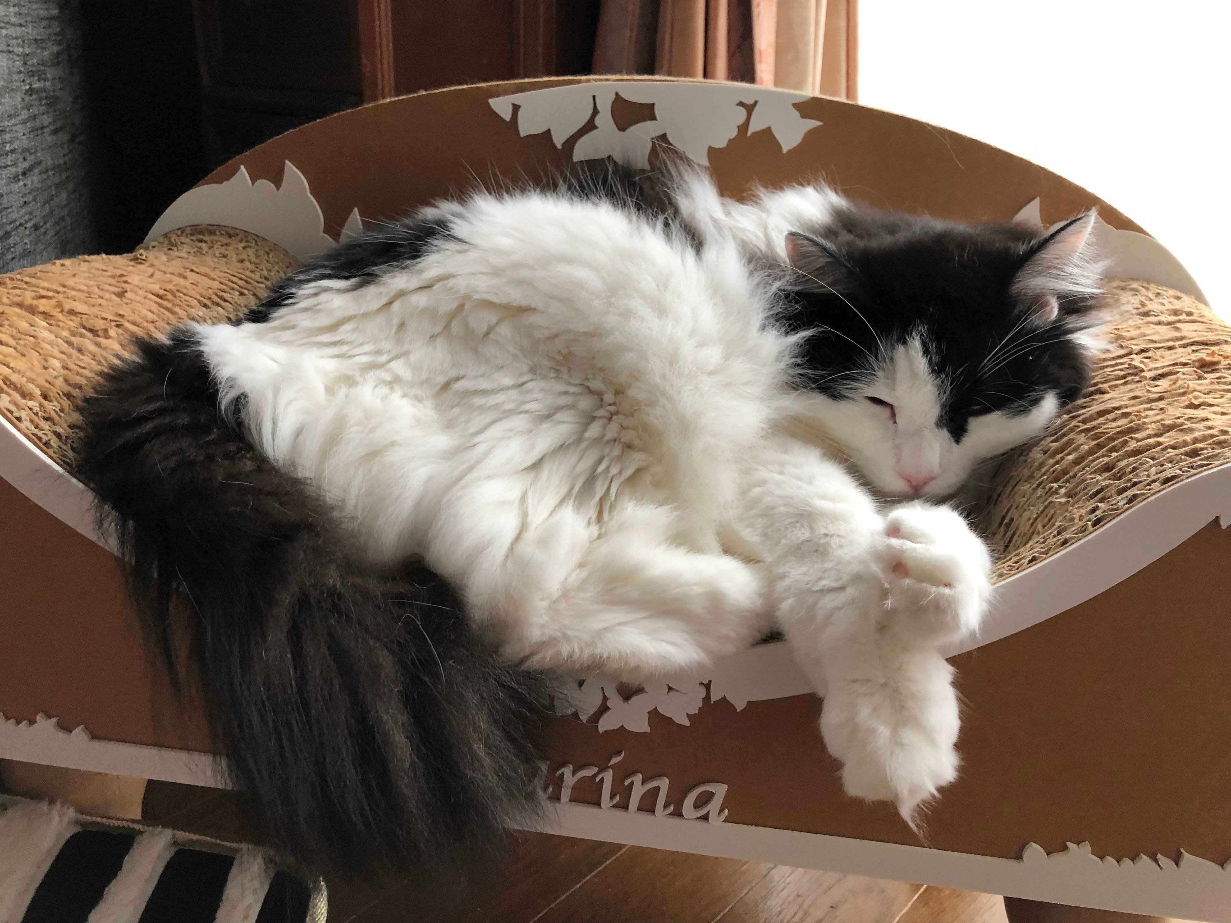 まるですんぴに寄り添いたいかのよう・・・しかし自分がデカイから・・・もとい、すんぴの睡眠の妨げにならないように、さりげなく近づいているのです・・・多分・・・。