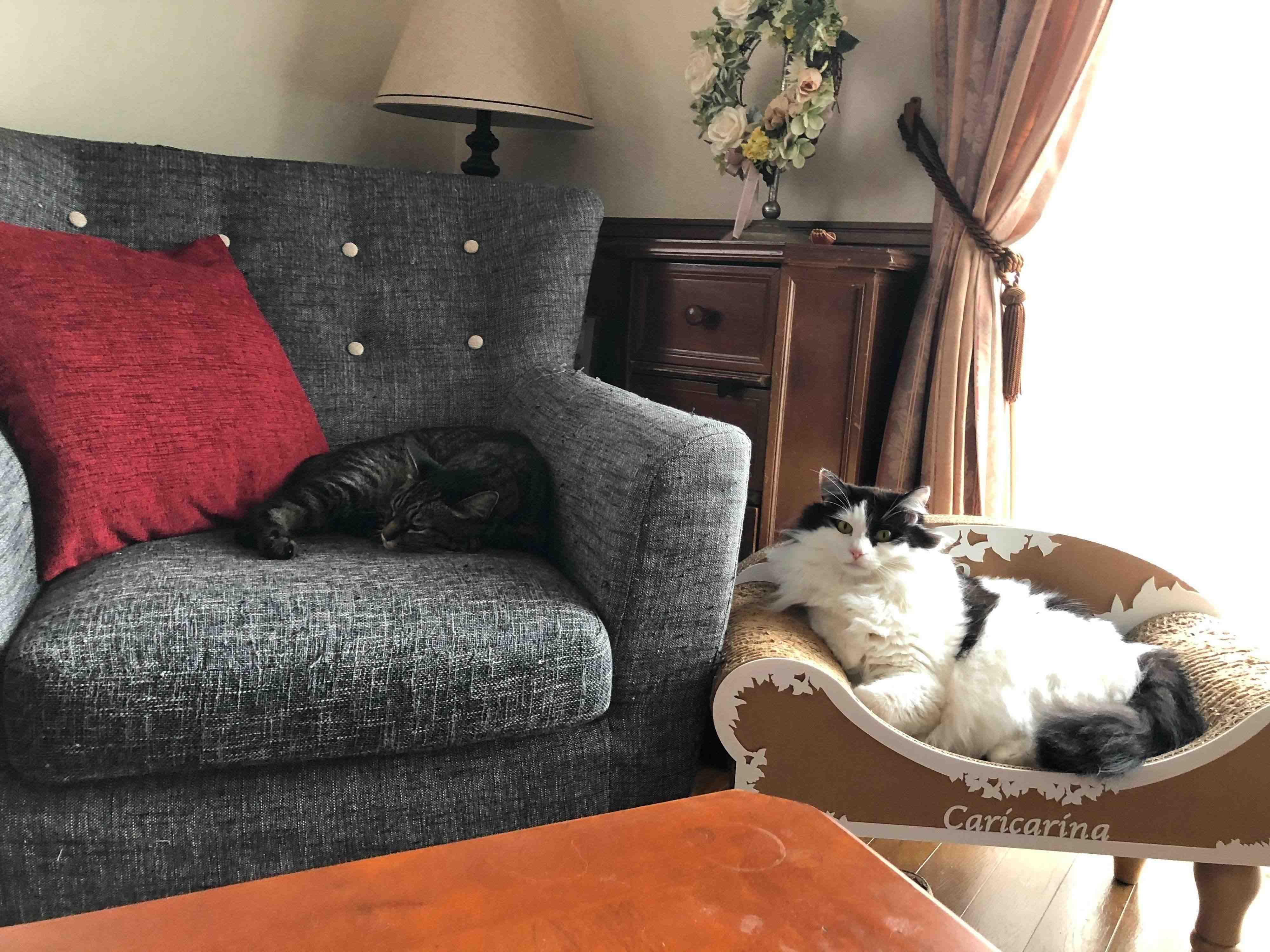 この向きで寝ていたのに、すんぴが隣のソファに来た直後・・・