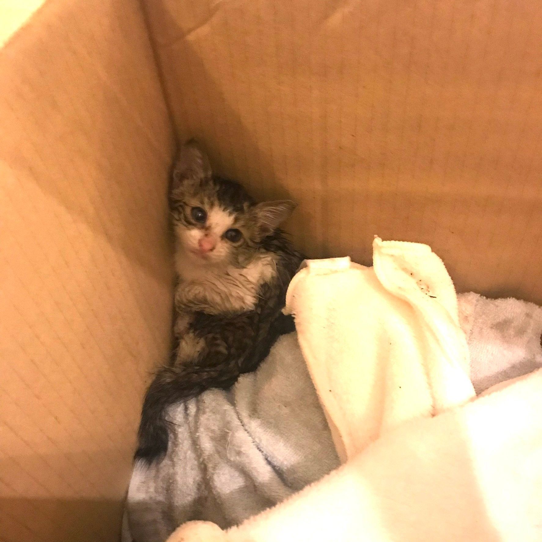 ルイさんと彼氏さんは保護することを決意し、泥だらけになりながら子猫と数時間追いかけっこ。そうして、ようやくおうちに連れて帰ることができたのです。