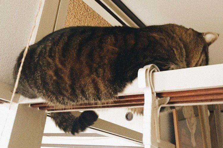 猫のバランス感覚にびっくりだけど、はみ出したお肉が気になる…! 【しまねこぐぐ】vol.56