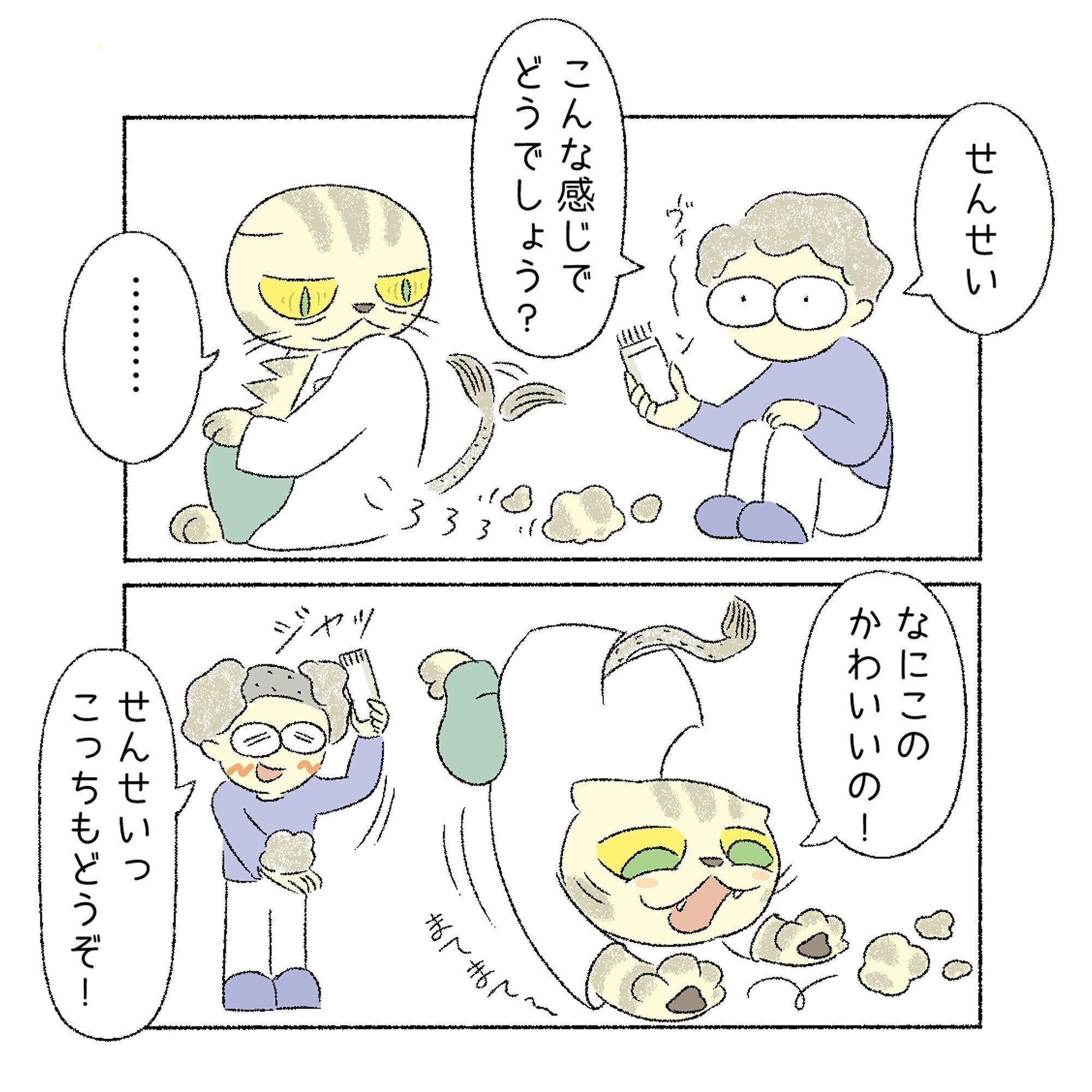 そんなわけで、体を舐めるのが苦手なししまるのために、蒸し暑い夏場だけでもしっぽの毛をカットすることにしたのでした。(トイレの後は、皮膚の状況を見て温タオルで拭いて、お手入れもしています)