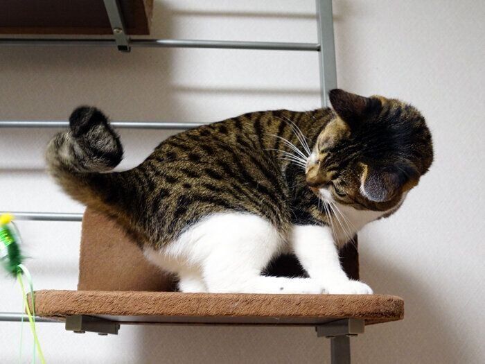 てんちゃんは手足がちょび~っと短いもんですから、何となく全体のバランスが子猫っぽく見えるし、うにともーちゃんの男のコしかいなかった我が家にはじめてやって来た女のコなので、いつまでたっても『末っ子ちゃん♪』という意識が抜けなかったんですけど、昨年ムームーがやって来て、末っ子てんてんちゃんが何とお姉さんに!