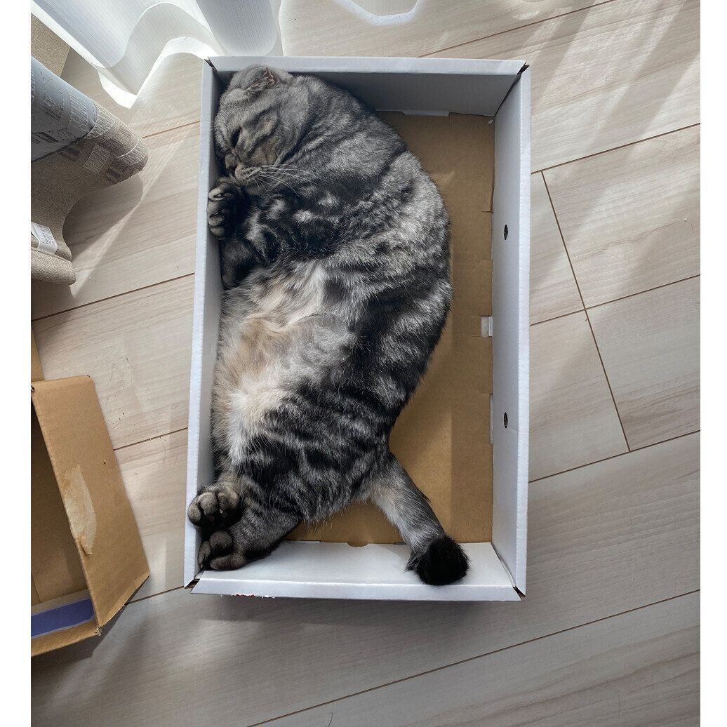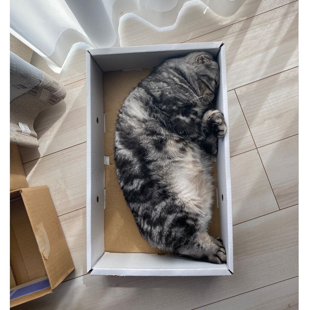 この箱は、ししまるの身体に対して少し大きめです。