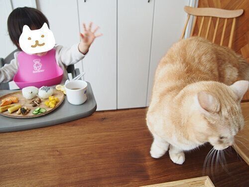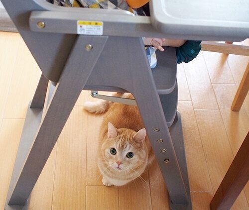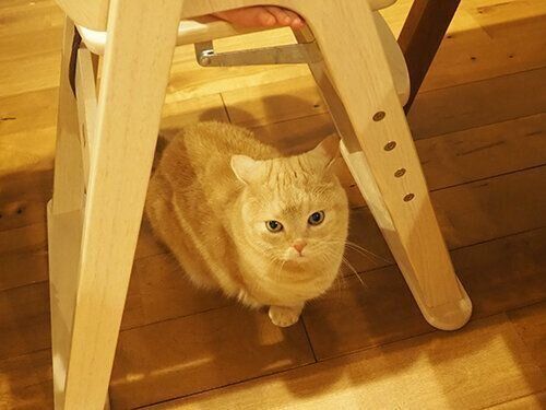 おこぼれ待ち?ご飯の時のぷーちゃんの定位置 【マンチカンのぷーちゃん】vol.116