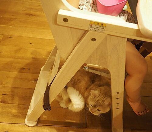 赤ちゃんの時からテーブルの下がぷーちゃんの定位置でした。