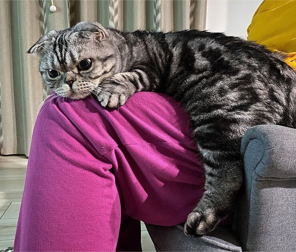 これまでも私が息子の寝かしつけをすることはありましたが、妻のひざの上でくつろぐししまるを目撃したのはこの日が初めてでした。