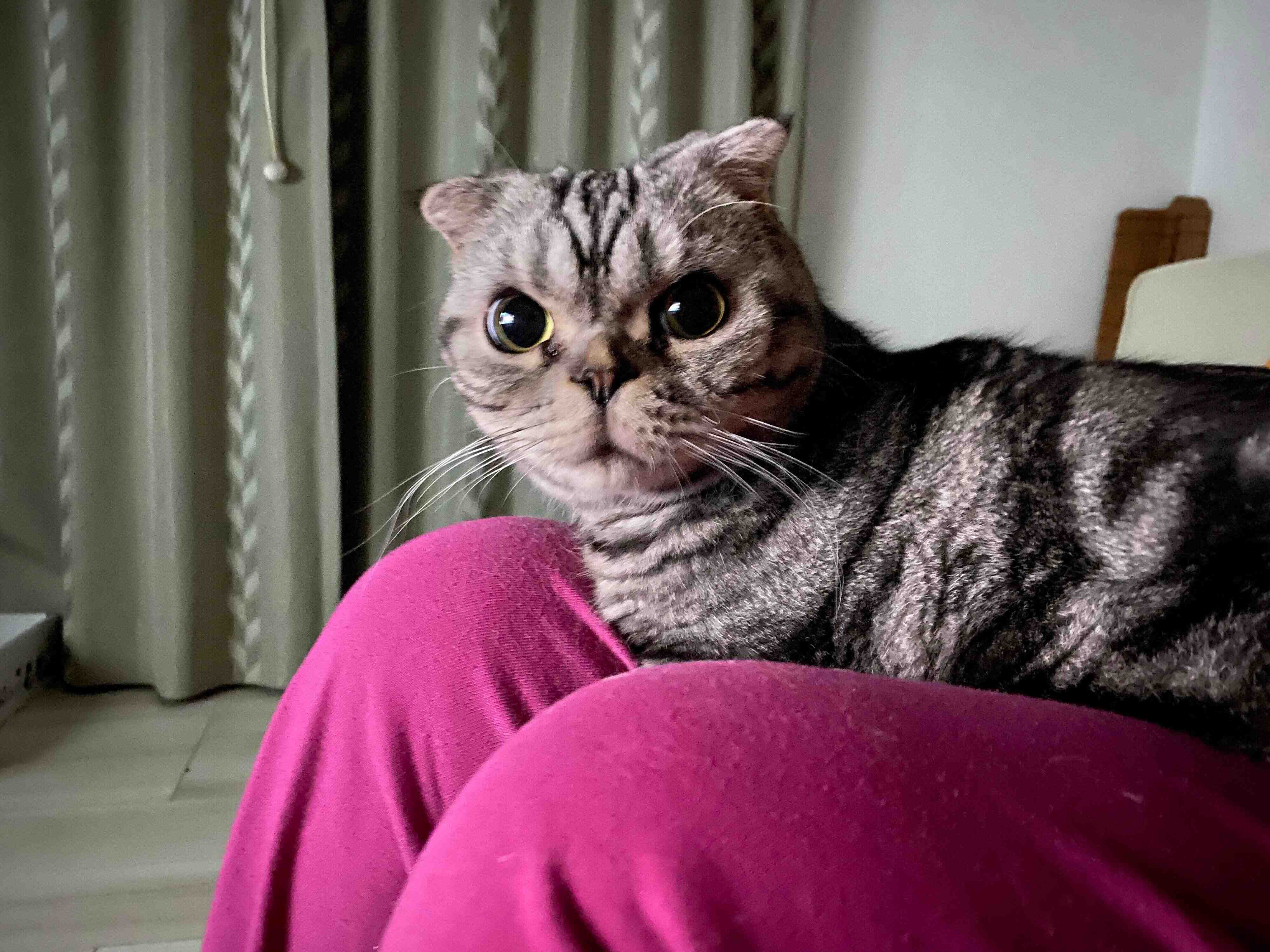 今までは、ししまるは寝室のドアの音を聞くと、妻のひざからサッと降りていたようです。