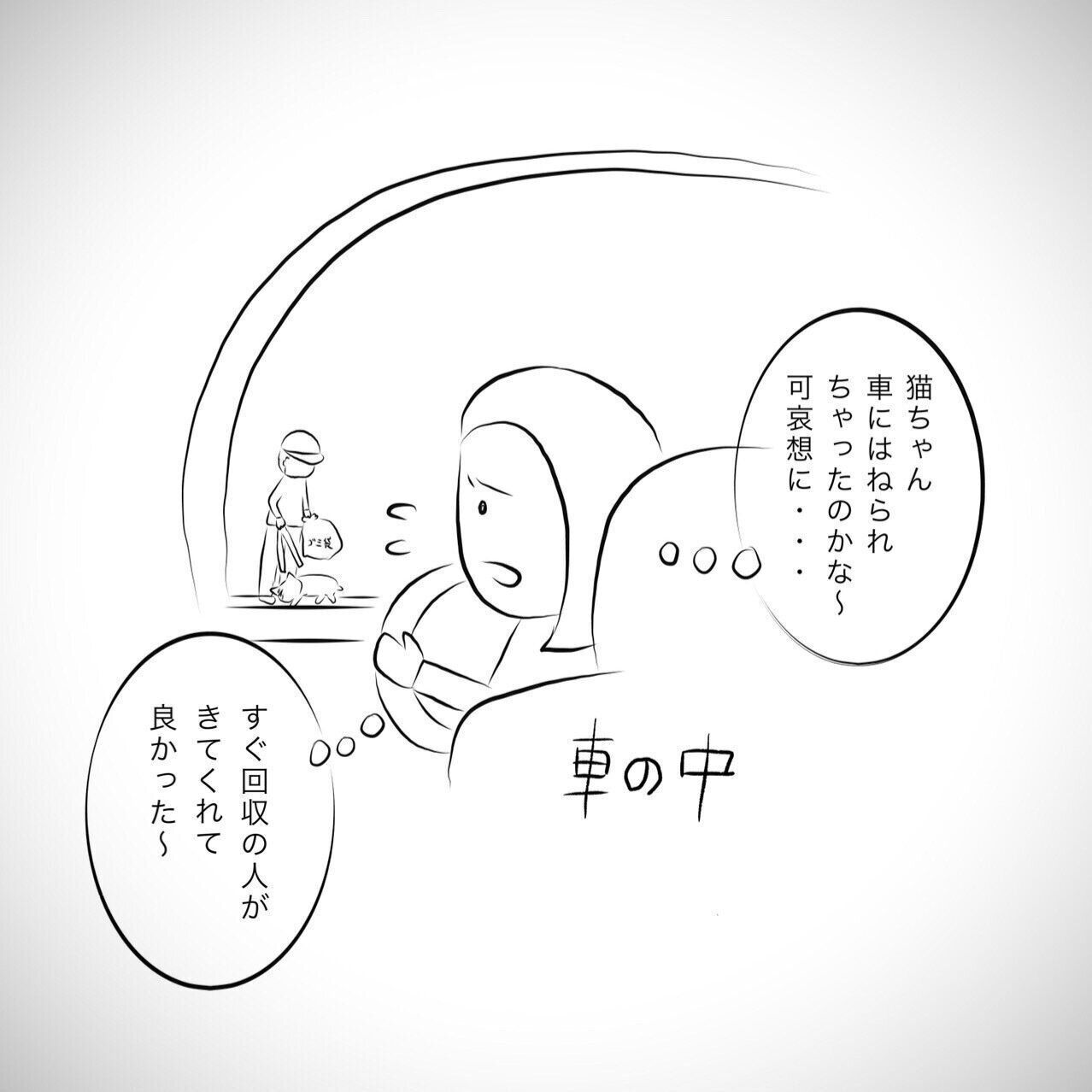 車にはねられたであろう猫が回収されようとしていて