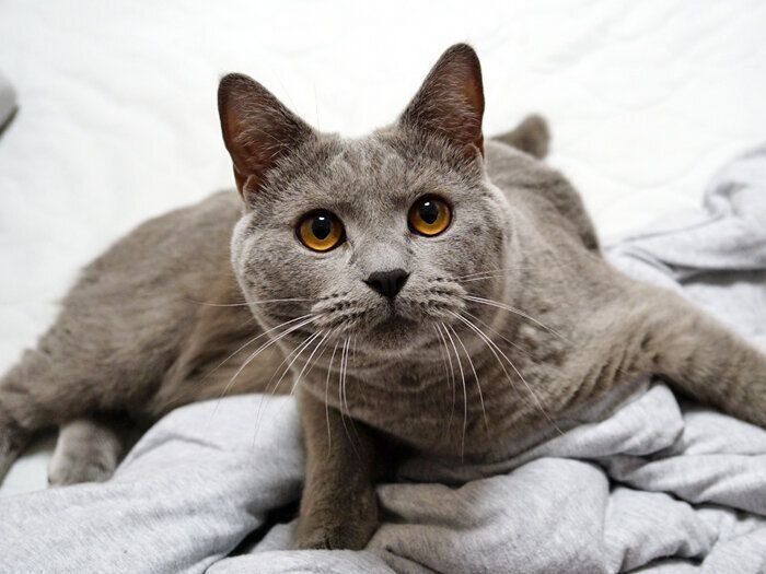 我が家初の単色!シャルトリューの男のコ。まだまだ子猫ちゃん…と思っていたら、うにやもーちゃんに追い付け追い越せの大きな猫に!何事にも動じないおだやかボーイです♪