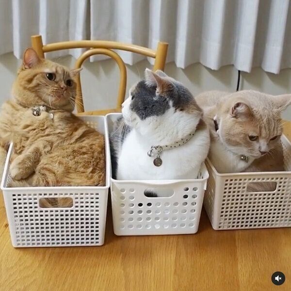 「可愛い」が渋滞してる! マンチカン3姉妹がそれぞれカゴに入った後のやりとりに注目