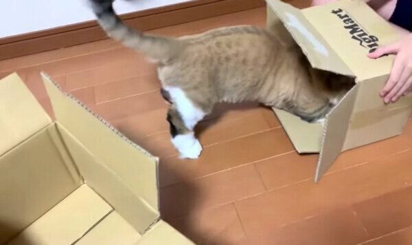 たとえば、秀吉くんは箱が大好きなのだそうですが、すでに箱の中に入ってくつろいでいるのに、別の箱を見るとピョーーーンと飛び込んでいってしまったり…。