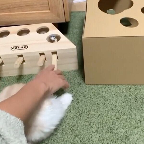 にゃん鈴ちゃんがおもちゃの遊び方を教わっていると…