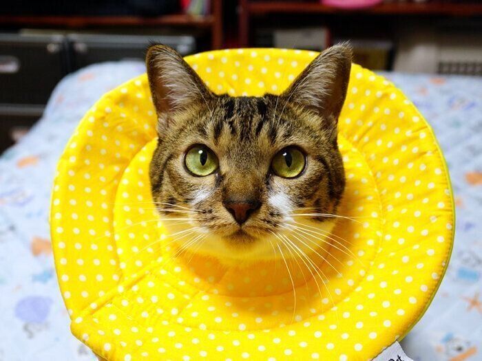 『こんなにちっちゃいのに、こんなに大きなエリザベスカラーを付けなきゃならないなんて・・・かわいそうなてんちゃん(;ω;)』と子猫の頃は思ったこともありますけれど、それがあったからこそ、今ほぼノーストレスでエリザベスカラーを付けていられるんだから、あのたいへんだった日々も無駄じゃなかったってことだよね!