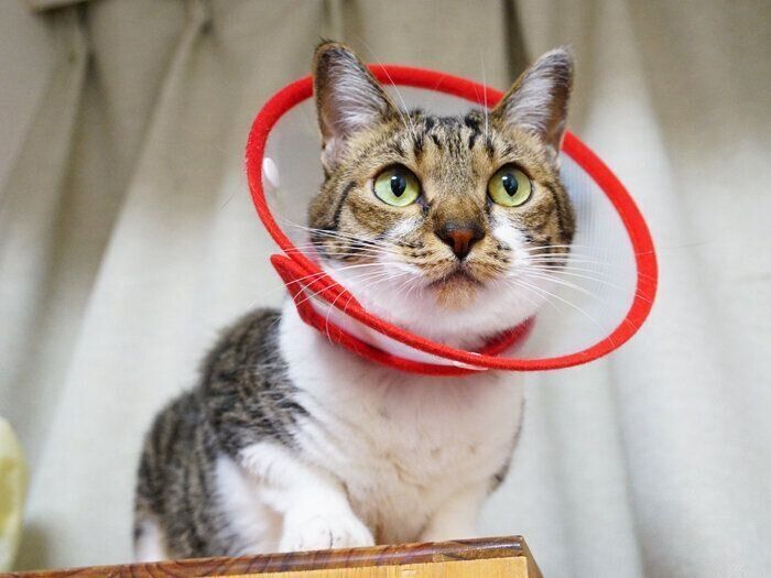 でも我が家のてんちゃん、実はかなり得意なんです、エリザベスカラー。昔から目のケガや疾患に悩まされてきたものですから、子猫の頃からエリザベスカラーを付ける機会がかなり多かったんですよね。でも『子猫の頃から付けていた』というのが逆によかったようで、今ではエリザベスカラーを付けていようがまったく気にせず、ゴハンも食べる!トイレも行く!走り回る!ジャンプする!と、まったく普段通りの生活がおくれるほどの“エリザベスカラーさばき”をみせているのです。