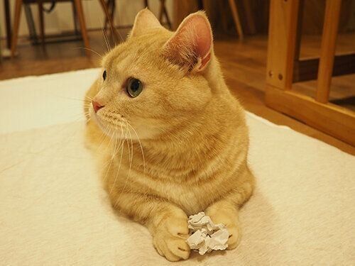 ぷーちゃんはくしゃっと丸めただけの紙の方が楽しいみたいです。
