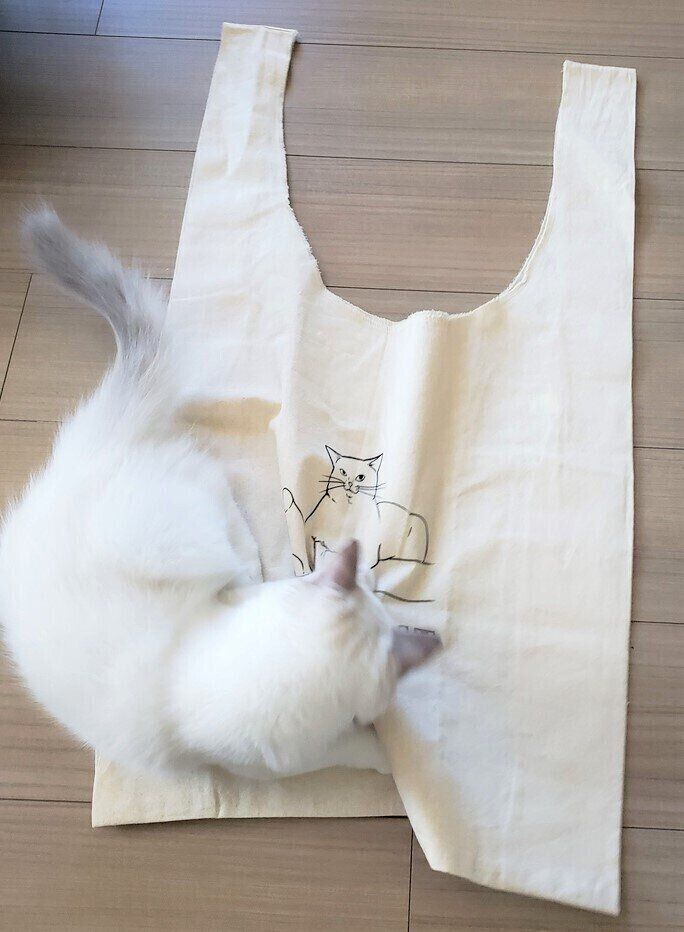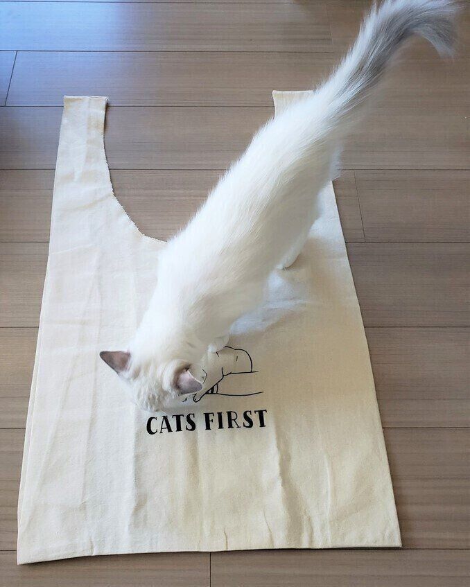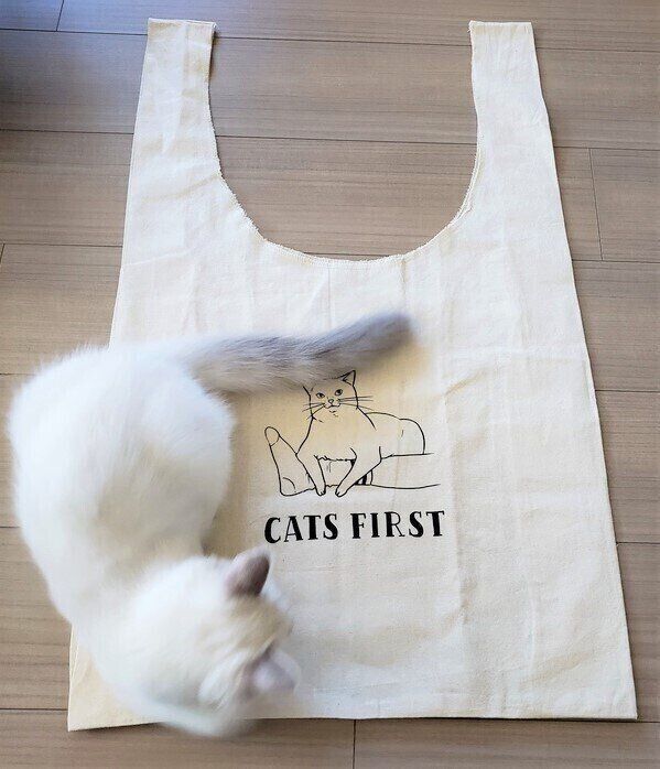 【ねこ好きさん必見!】ねこのきもちグッズ部・第1弾 「おおきなコットンマルシェバッグ」サンプル完成しました