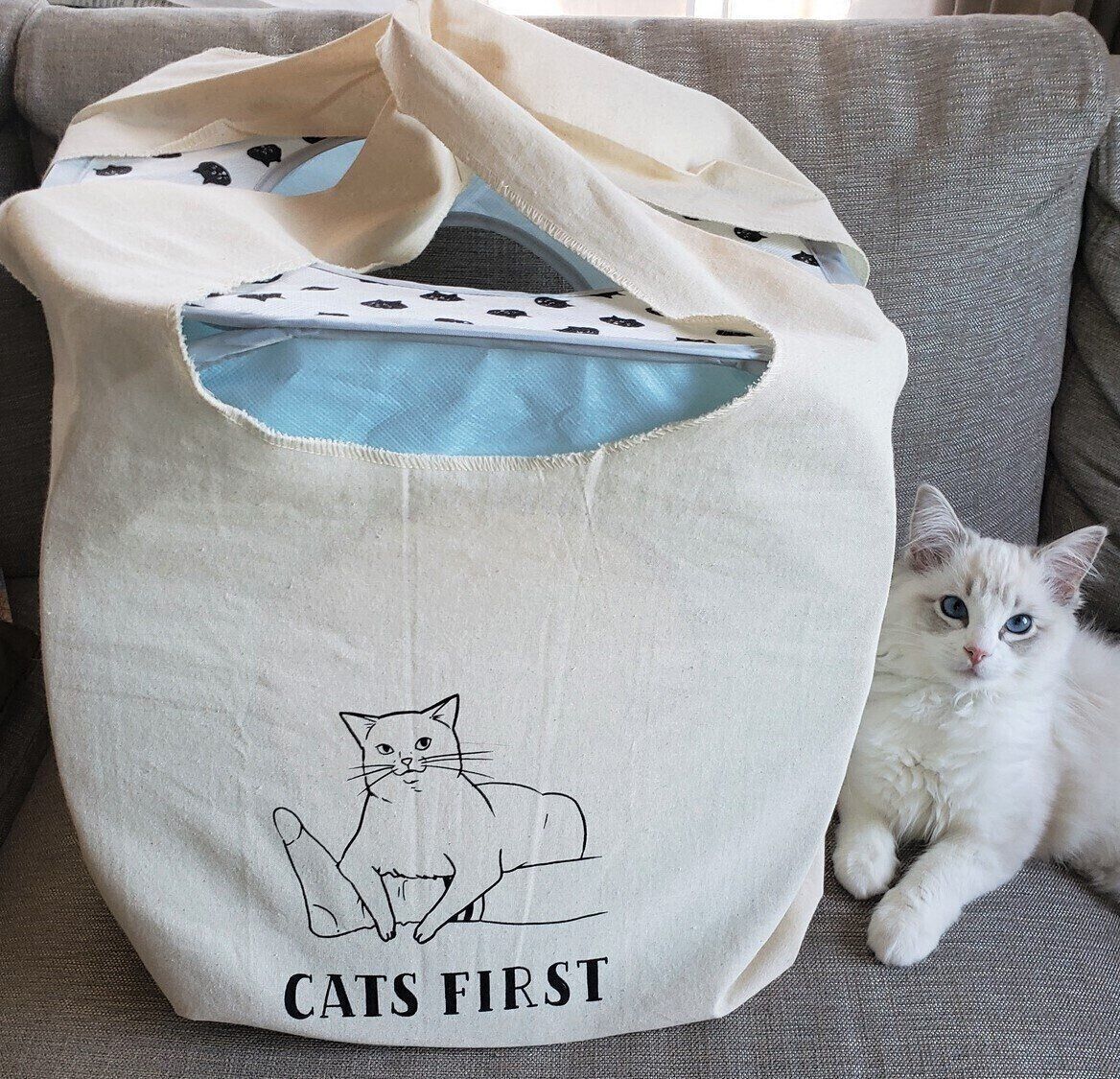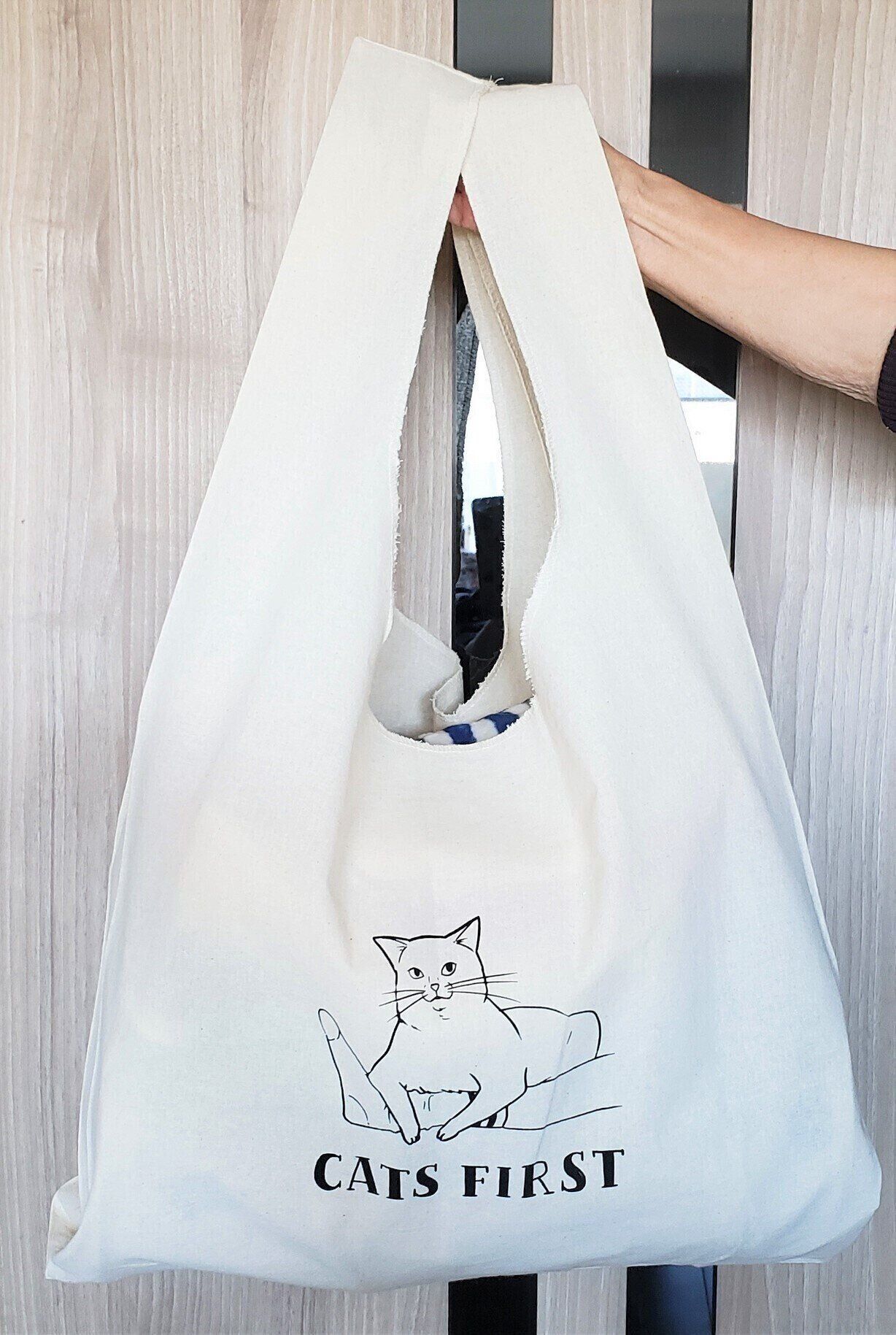 猫グッズはもちろん、お出かけにもオシャレで可愛いし、いつものお買い物にも大活躍です。長さのあるフランスパンやねぎもすっぽり収まってしまいますよ!