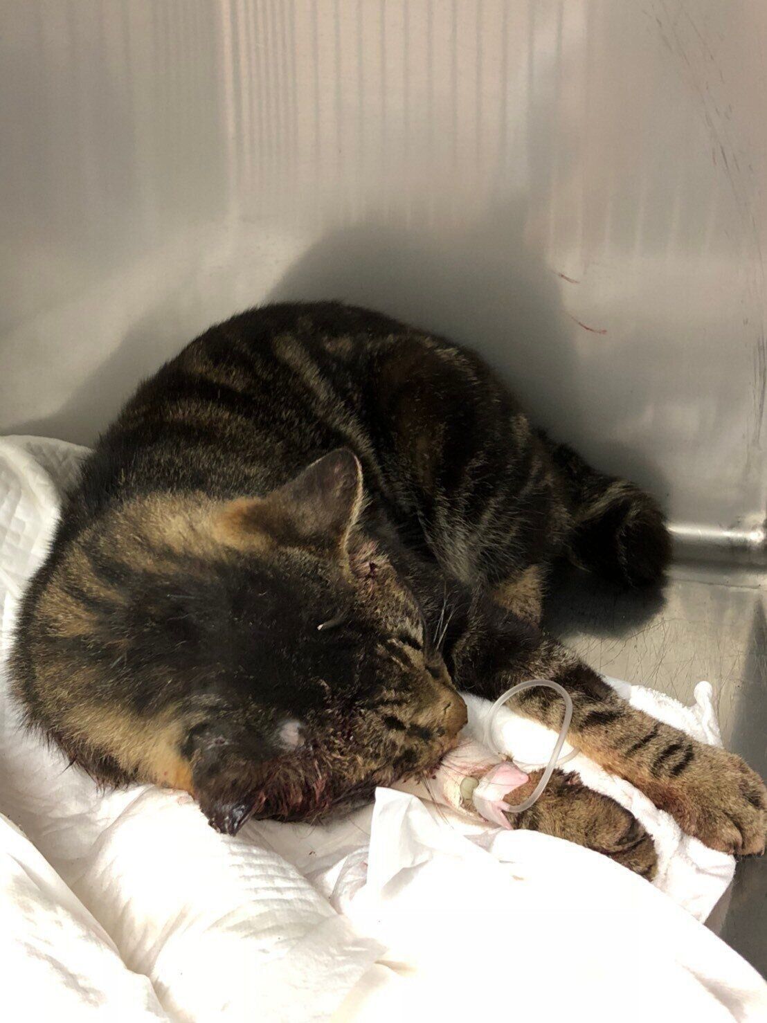 業者さんから回収されようとしていたその猫は、実はまだ生きて抵抗していて。