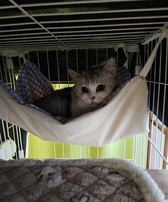 紹介するのは、X(旧Twitter)ユーザー@hatukittさんの愛猫・よつばくん(取材時1才)。1枚目は、お迎え初日の生後2カ月半のよつばくんを撮影した一枚です。片手でひょいと持てるほど小さかったというよつばくんは約1年後、どんな姿に成長したのでしょうか。