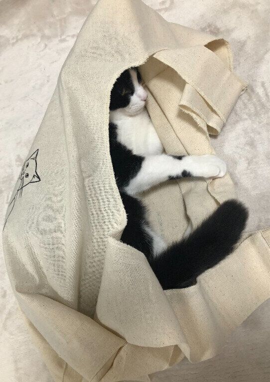 約5kgの猫も、みずからすっぽりはいってしまいました