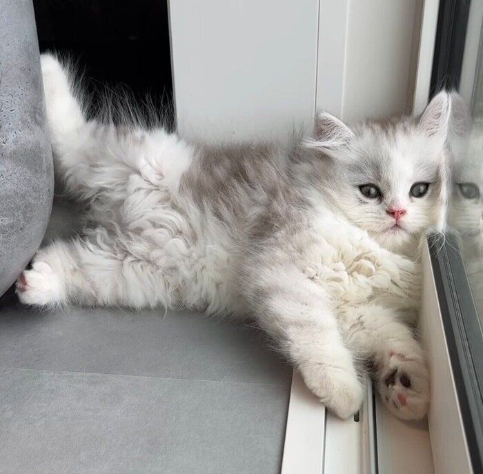 お迎えして9日目、窓辺で"おじさんみたいな格好"で毛づくろいしていた子猫・ぴふちゃん。生後9カ月のパワフルで甘えん坊な成長姿を紹介します。