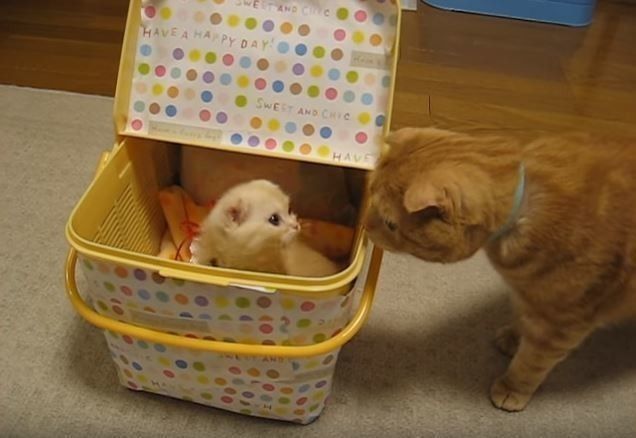 初めてのご対面!生後1カ月の子猫に出会ったお兄ちゃん猫の反応は…?