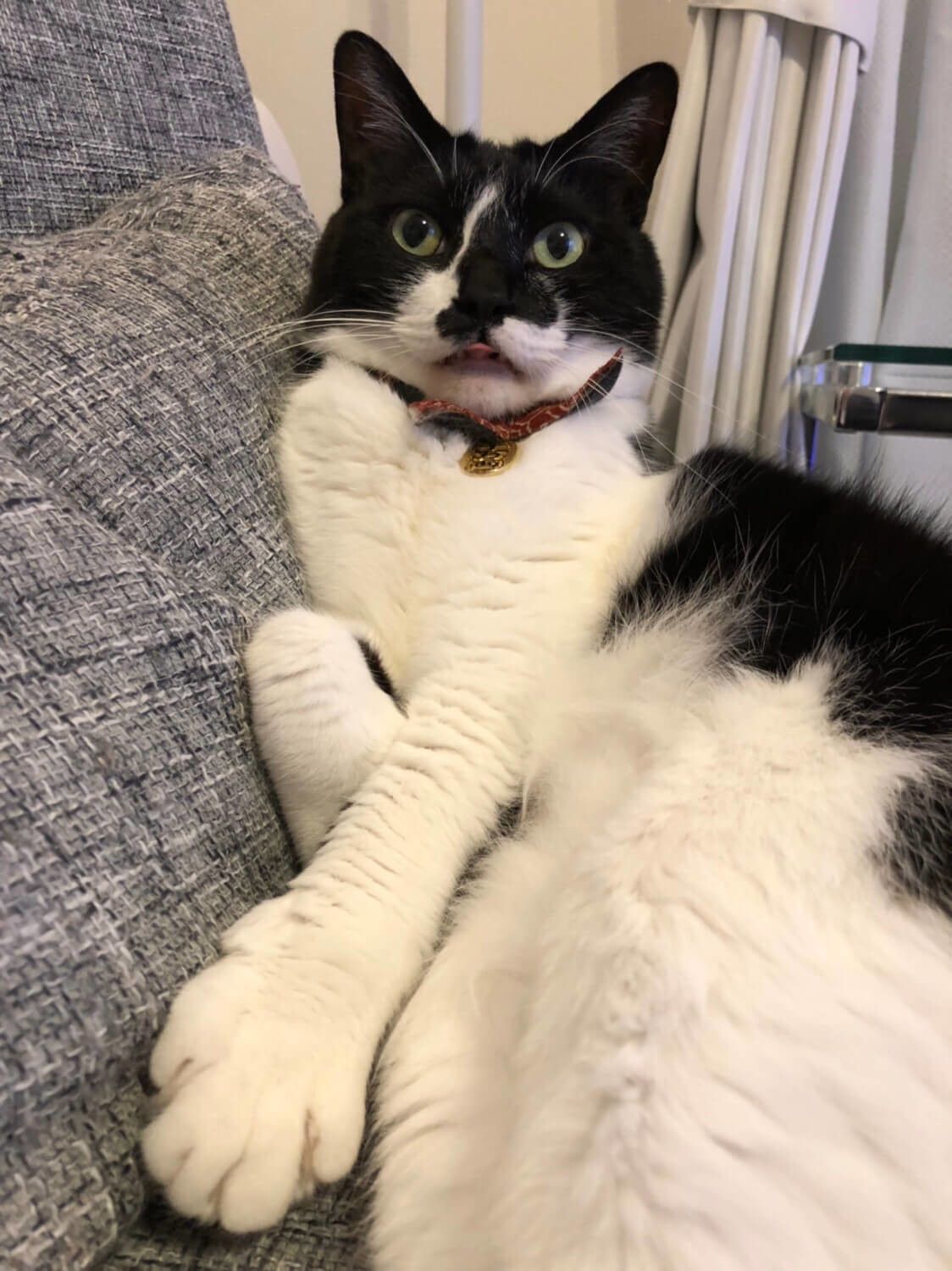 紹介するのは、X(旧Twitter)ユーザー@pushu_gubiさんの愛猫・神楽ちゃん。飼い主さんに頭を向ける写真に約6.5万のいいねが付いて話題になった神楽ちゃんについて、飼い主さんに詳しい話を伺いました。