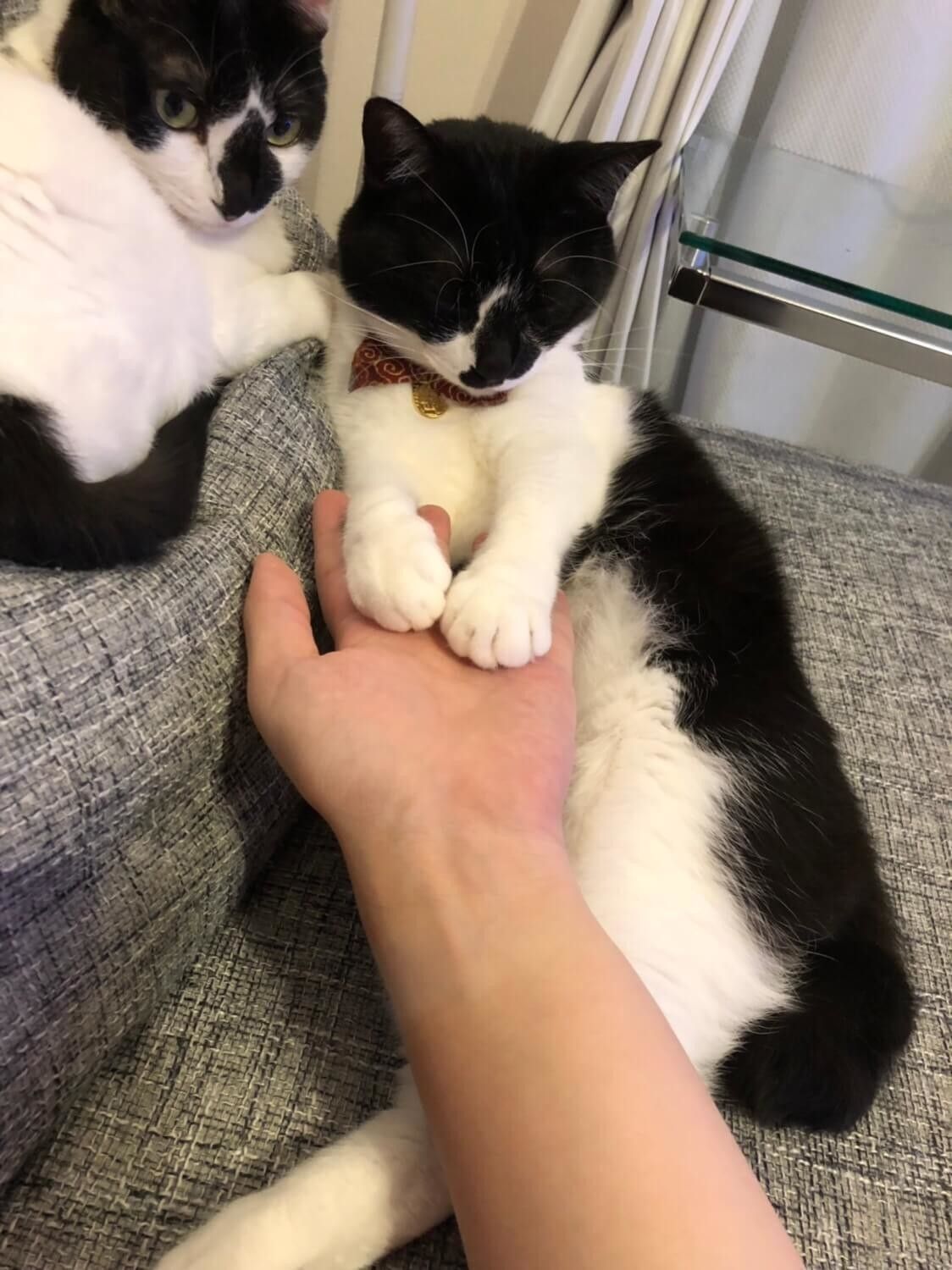 【悲報】我が家の猫、お手を覚えるも、知能が高すぎて両手でやっちゃう〜リュックと愉快な仲間たち。あ、あと響介vol.51〜
