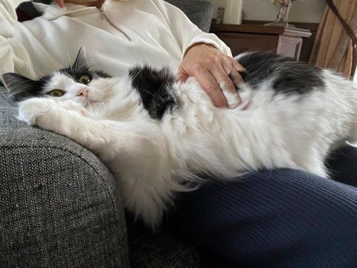 紹介するのは、X(旧Twitter)ユーザー@pushu_gubiさんの愛猫・神楽ちゃん。飼い主さんに頭を向ける写真に約6.5万のいいねが付いて話題になった神楽ちゃんについて、飼い主さんに詳しい話を伺いました。
