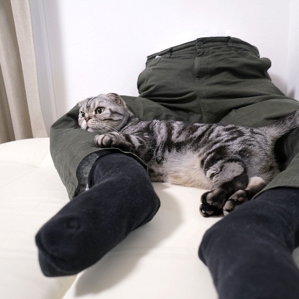 飼い主の下半身に似せた「ズボンくん」 冬の救世主にイチャイチャ・メロメロになったししまるのお話【連載】渋ネコししまるさん #74