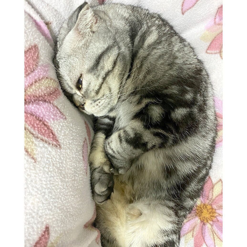 冗談半分で寝かしつけてみたら本当に寝ちゃった……! 元野良猫・きなこちゃんの“赤ちゃんみたいな”寝姿がSNSで大反響。