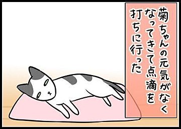菊ちゃんの最期菊ちゃんへこれを描くにあたり母と菊ちゃんの最期を思い出していました。 そう、実は漫画では描きませんでしたが家族全員が菊ちゃんの最期を看取ることが出来ました。菊ちゃん、甘えっ子で活発で、らいちやもーちゃんとはまた違う猫の魅力を教えてくれました。最後のコマの台詞を書いていて思ったのですが、らいちの最期の時ともしかして被っているかな…? いつだってどの子にだってそう願ってやまないことなので被ってしまったかもしれません。7月から菊ちゃんのお話にお付き合いいただきありがとうございました。 気づけば1