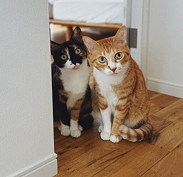 ビビりだけれど甘えん坊な、元保護猫の兄妹。6年の月日をともに過ごすなかで、飼い主さんは“猫と暮らす幸せ”を日々感じているそうです。《写真左から》モチャちゃん、チャビくん。@chabi_to_mocha仲良く寄り添いながら、こちらの様子をうかがっている2匹の猫。Instagramユーザー@chabi_to_mochaさんの愛猫・チャビくん(取材時6才6カ月)とモチャちゃん(取材時6才6カ月)です。「インターホンが鳴ってビビってしまった」という2匹は、仲良く猛ダッシュして2階に避難。飼い主さんは「そんなにビ