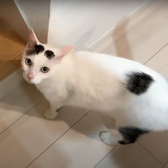 オデコちゃんはお父さんが帰宅すると「にゃ~にゃ~」と鳴いて出迎えます。その様子は、とってもうれしそう。果たして、お父さんの帰宅時間が遅くなっても、オデコちゃんは待っていてくれるのでしょうか。お父さんを出迎える表情の変化がおもしろい動画です。