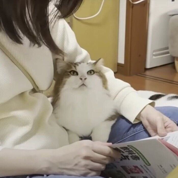 猫のスピカちゃんが飼い主さんを優しくフミフミしています。実はこれまで、スピカちゃんは抱っこが苦手で、ひざにのることもあまりなかったのだそう。でも飼い主さんが妊娠してからは甘えん坊に! この日もべったり抱きついて甘えています。動画です。