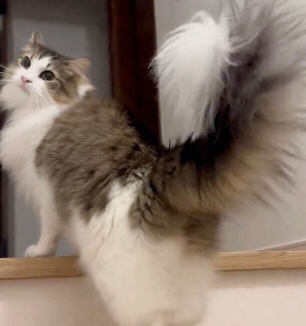 「感動しちゃいます」 階段の上でしっぽを振り回す猫の優雅で美しい“魅せ方”にうっとり!