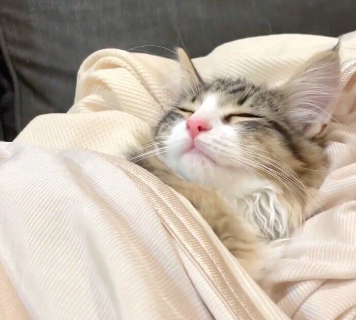 ウトウトする子猫に布団をかけると→0.1秒で寝ちゃった!? “赤ちゃん”すぎる姿に「天使」「添い寝したい」