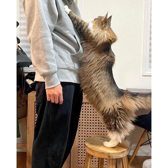 大きな体で“のび〜っ”とアピール! 甘えん坊すぎる猫の「抱っこしてポーズ」に悶絶