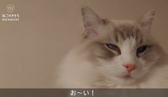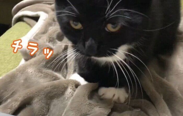 飼い主さんに「ごはん待ち」アピール(見えてないけど…)する猫の一部始終がかわいい♡