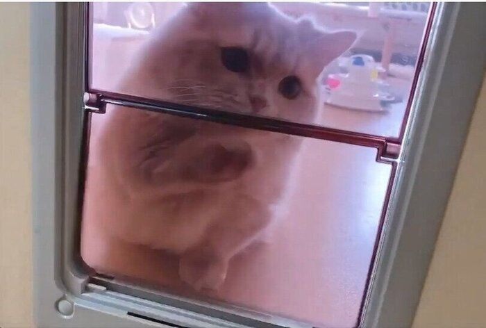短いおててで、ねこドアをバシバシ!いつでもどこでも、飼い主さんのことを追いかけてしまうにこくん。でも…ねこドアをうまく開けられない、不器用なにこくんに癒される動画です♡
