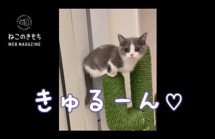 「のぼれたニャ♡」サボテン爪とぎの頂上を極めた子猫のキメ顔が可愛いすぎた!【いぬねこライター動画部】