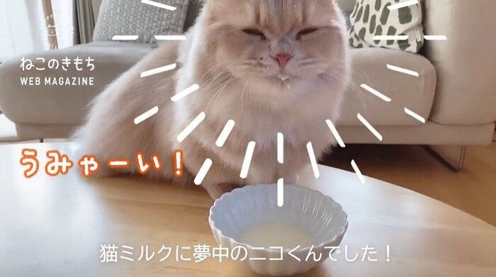 夢中になって猫ミルクを飲んでいるニコくん♡お口の周りがびちゃびちゃで、よくみると机にもはねちゃってます!一生懸命飲む姿が愛おしすぎるニコくんの動画です♪
