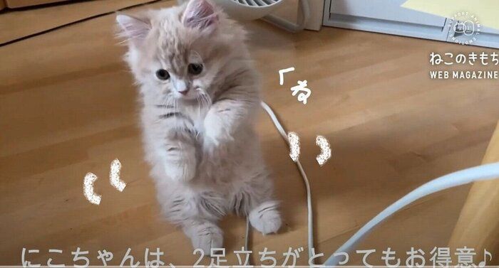 小さな体で2足立ちするマンチカンの子猫・にこちゃん。飼い主さんの前でなんとも可愛らしい「にこちゃんダンス」を披露してくれたんです!