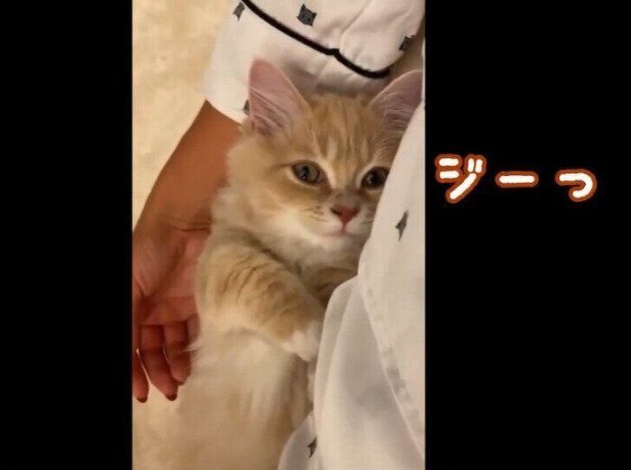 か細い声で鳴きながらママを見つめる子猫 腕の中で存分に甘える姿が悶絶級の癒し!