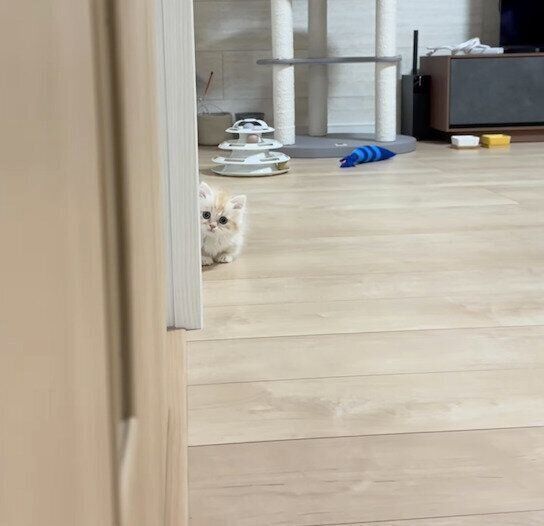 「だるまさんがころんだ」をする子猫 “じわりじわり”と接近する姿が、何度でも見たくなる可愛さ!
