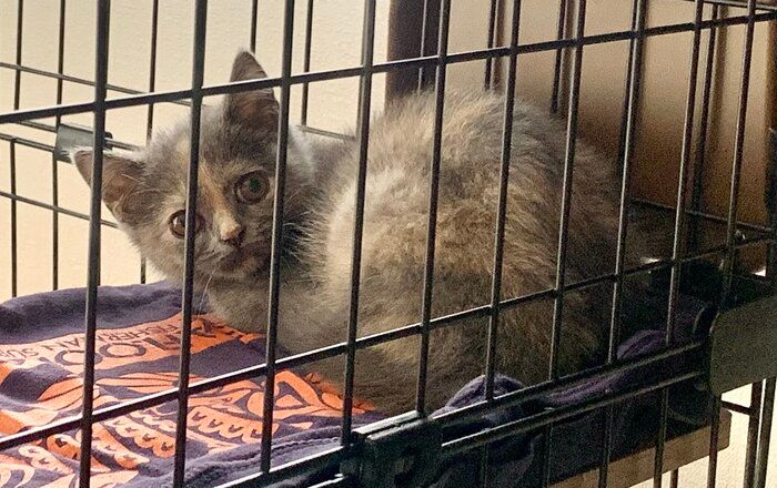 @keke38448768さんの愛猫・てんちゃん(取材時4才)。こちらは、生後2カ月ごろのてんちゃんの写真です。てんちゃんは元野良猫で、写真は保護主さんが撮影したものだそうです。