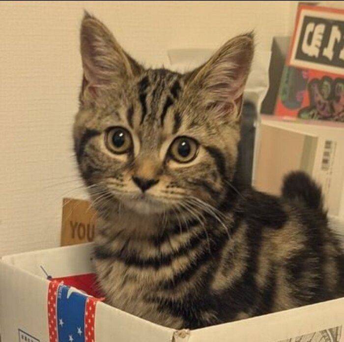 ひめちゃんは、飼い主さんに保護された元保護猫です。箱の上に座るちんまりとした姿が可愛いですね!飼い主さんによると、このときのひめちゃんはまったく人を怖がることもなくゴハンを食べて、段ボール箱の上にちょこんと座っていたのだそう。